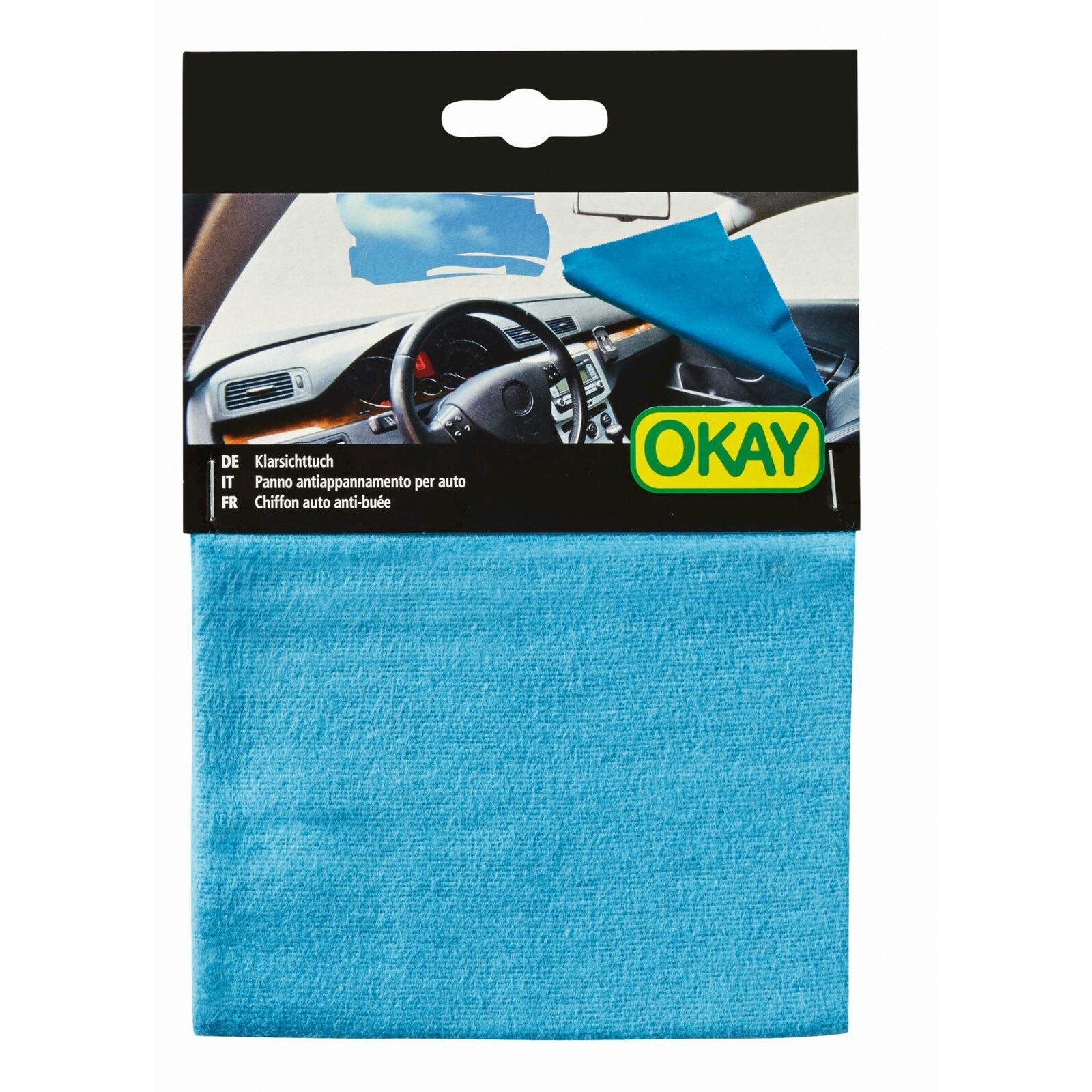 Le complément parfait du nettoyant pour vitres d’Okay Power. Chiffon pratique en non-tissé de couleur bleue pour nettoyer les vitres et prévenir la formation de buée.