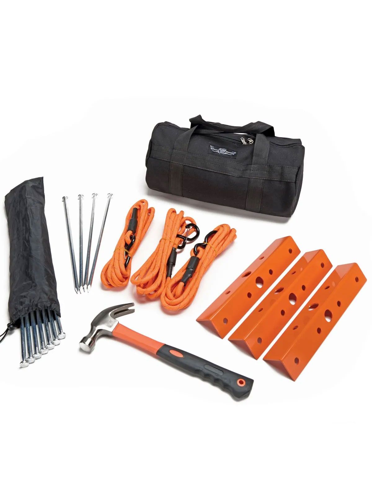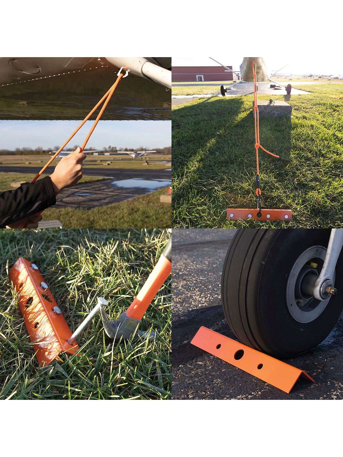 Sécurisez votre avion en quelques secondes grâce à ce système d’arrimage simple et efficace. Fixez les mousquetons revêtus, tendez la corde et le cliquet verrouille automatiquement la tension — aucun nœud ni outil nécessaire. Pour libérer, il suffit d’appuyer sur le bouton de déverrouillage.