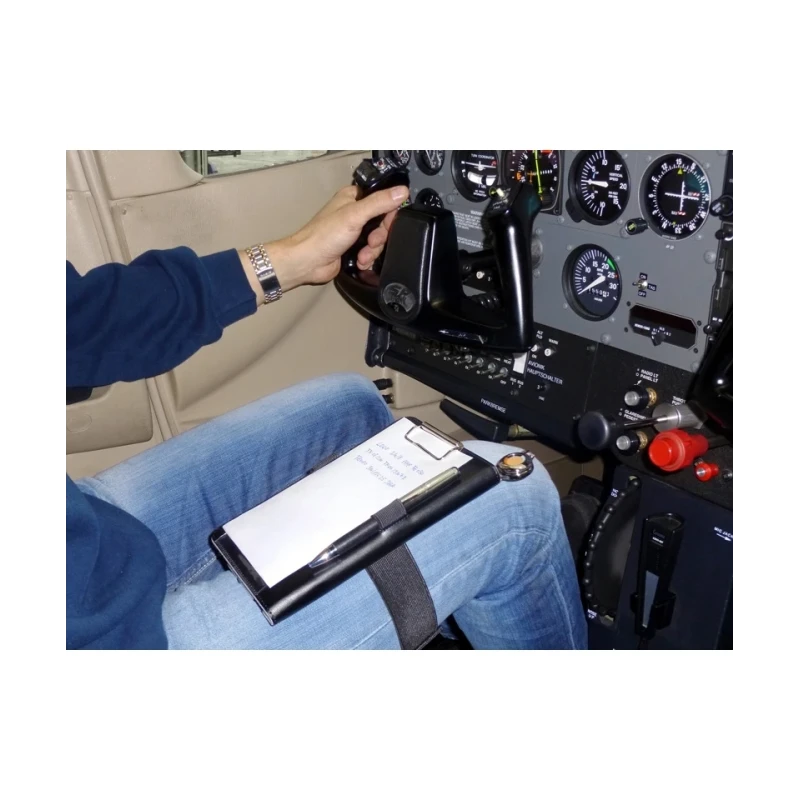 Kneeboard PILOT mini élégant et de haute qualité, conçu pour les tablettes de 7″ à 8,5″. Fabriqué en cuir écologique, il est équipé d’une large bande Velcro, d’un clip de maintien, d’un porte-stylo élastique et d’une prise pour le PILOT CONTROLLER KIT.
