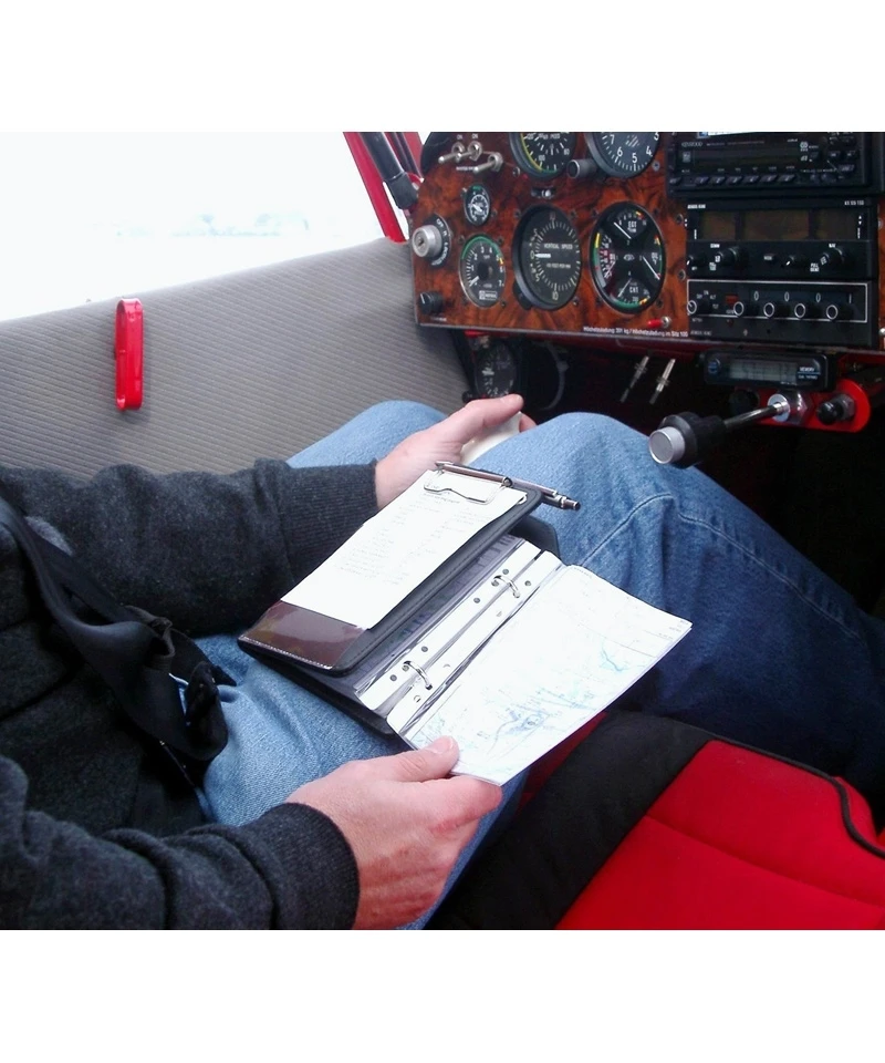 Le PICCOLO PROFI au format DIN A6 est fabriqué en cuir écologique et offre les mêmes fonctionnalités que le kneeboard Pilot PROFI.